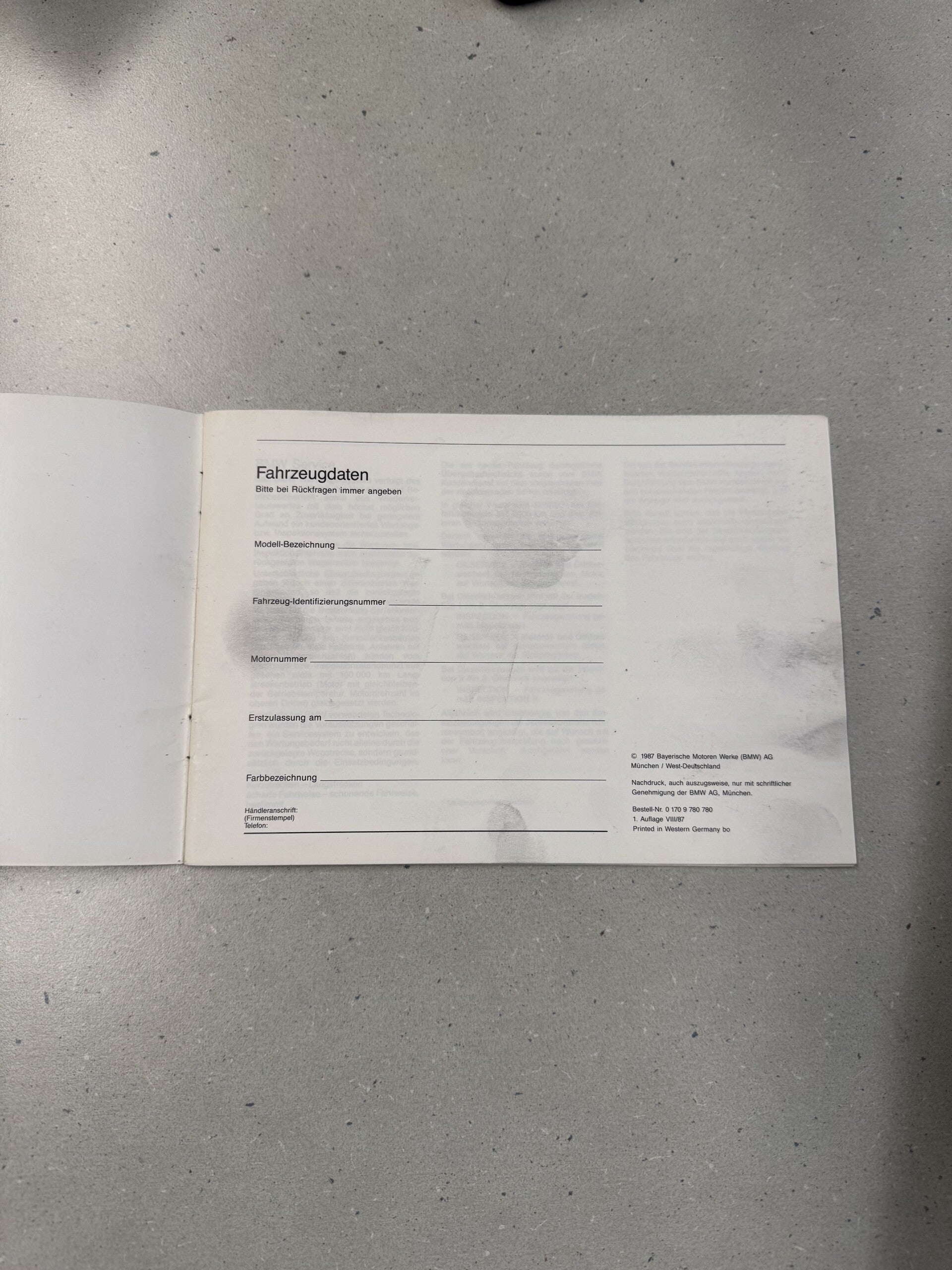 BMW Serviceheft aus 1987