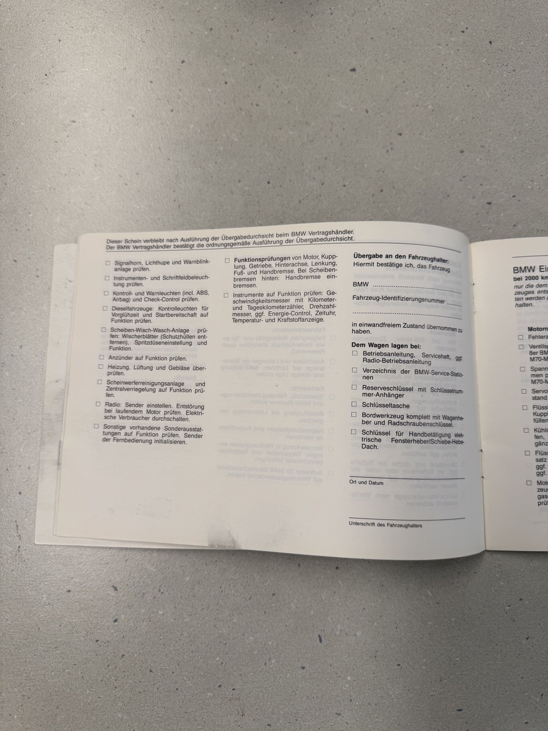 Leeres Original BMW Serviceheft